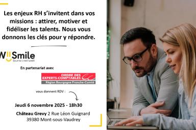 Vie de lâordreVendredi 24 octobre 2025Une soirĂ©e Wiismile en partenariat avec lâOrdre des Experts-Comptables BFCLâOrdre des Experts-Comptables de Bourgogne-Franche-ComtĂ©, en partenariat avec Wiismile, vous convie Ă une soirĂ©e dĂ©diĂ©e aux enjeux RH dans les missions de conseil : attirer, motiver et fidĂ©liser les talents. -